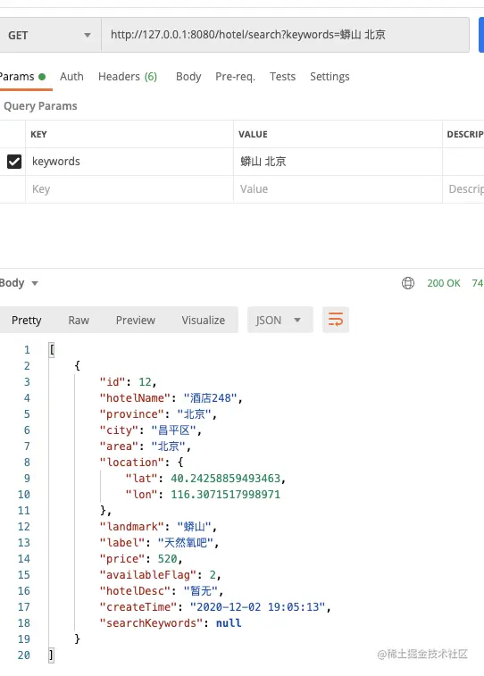 4、根据关键词从Elasticsearch查询酒店列表。