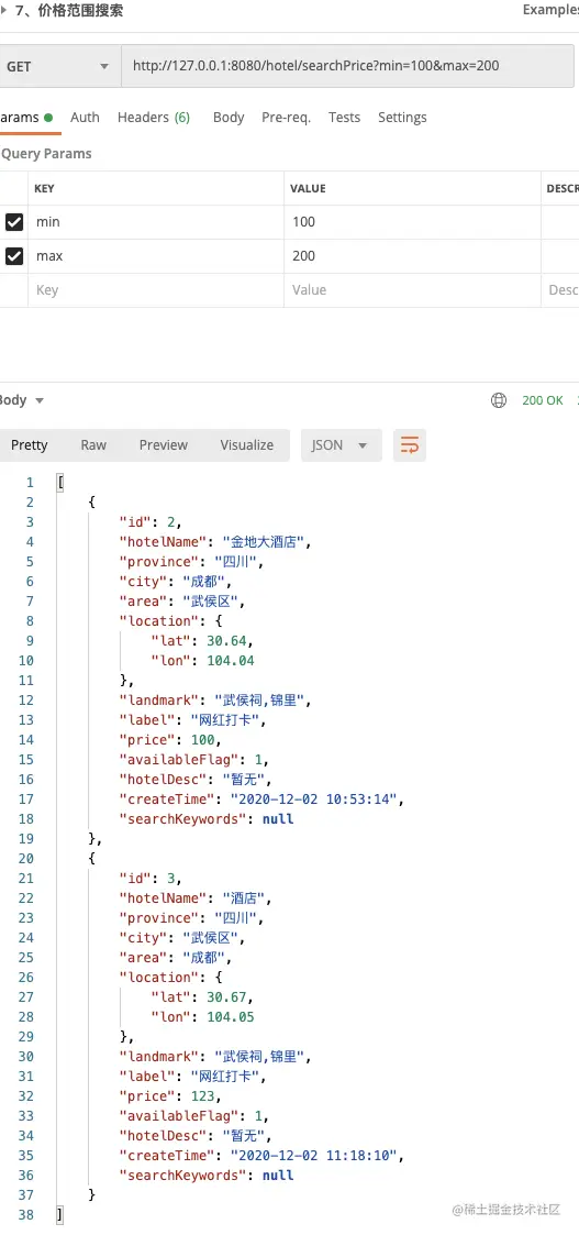 6、根据价格范围从Elasticsearch查询酒店列表。