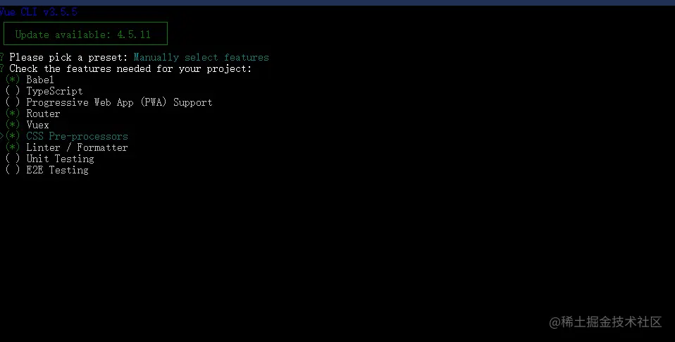 1.使用vue create xxx(项目名) 创建项目