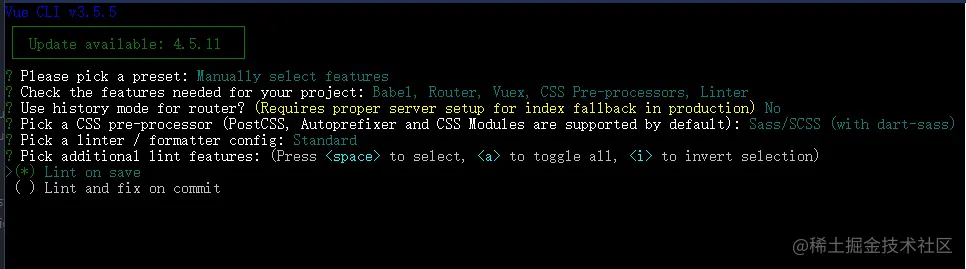 2.vue-cli构建项目时自定义选项选择eslint+Standard config