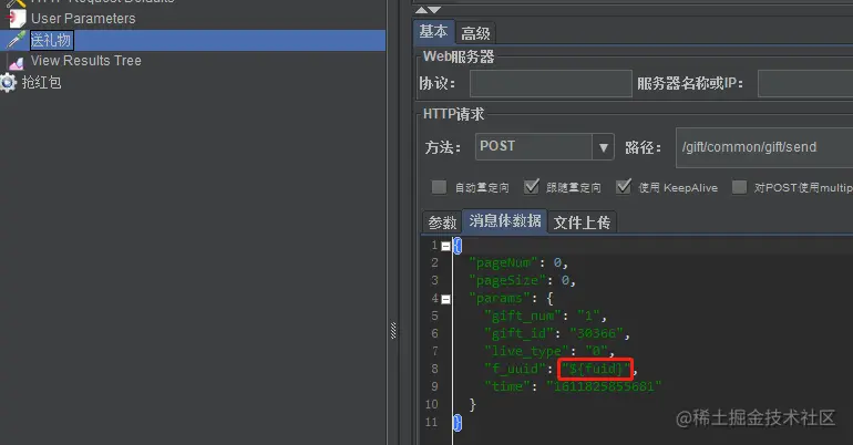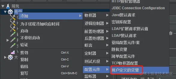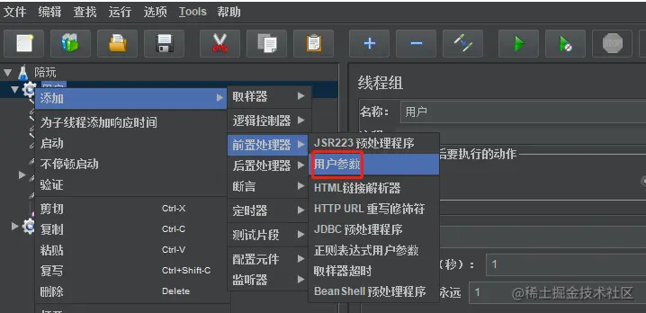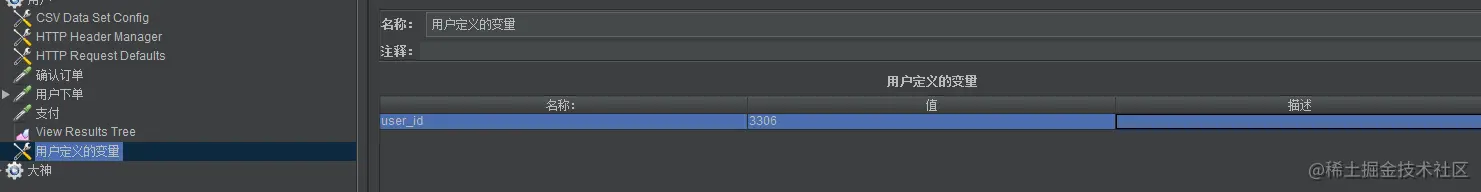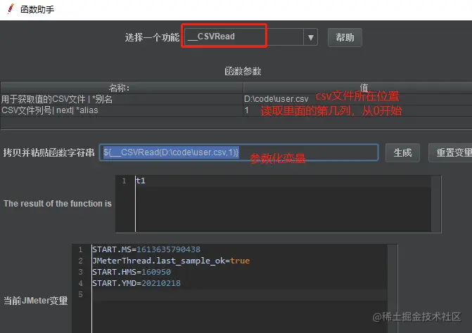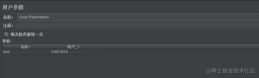 jmeter参数化设置 莯姮 2021-02-18 208 阅读1分钟 1.用户参数(线程组>添加>前置处理器>用户参数) 2.CSV Data Set Config/CSV数据配置文件 3.函数助手 注意:Jmeter读取的文件中第一行没有标题,直接就是值了。 4.用户自定义变量(线程组>添加>配置原件>用户定义的变量)