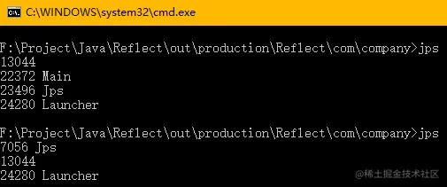 我们在执行一个简单的程序Main方法程序的时候,实际上会加载非常多的类。当我们在代码中加入挂起代码,然后在挂起期间采用JPS指令查看JVM当前所在运行的进程号(pid)如下: