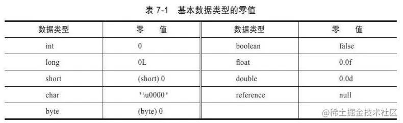为类变量分配内存并且设置该类变量的默认初始值。即零值。有如下代码: