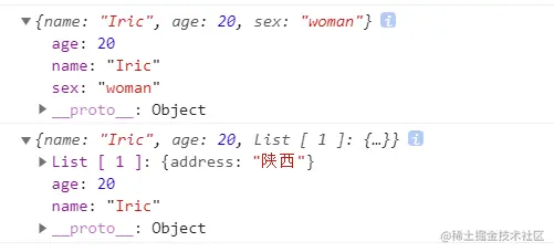 console.log(person2) //{sex: "man", address: "shanxi", count: 15, name: "Iric"}