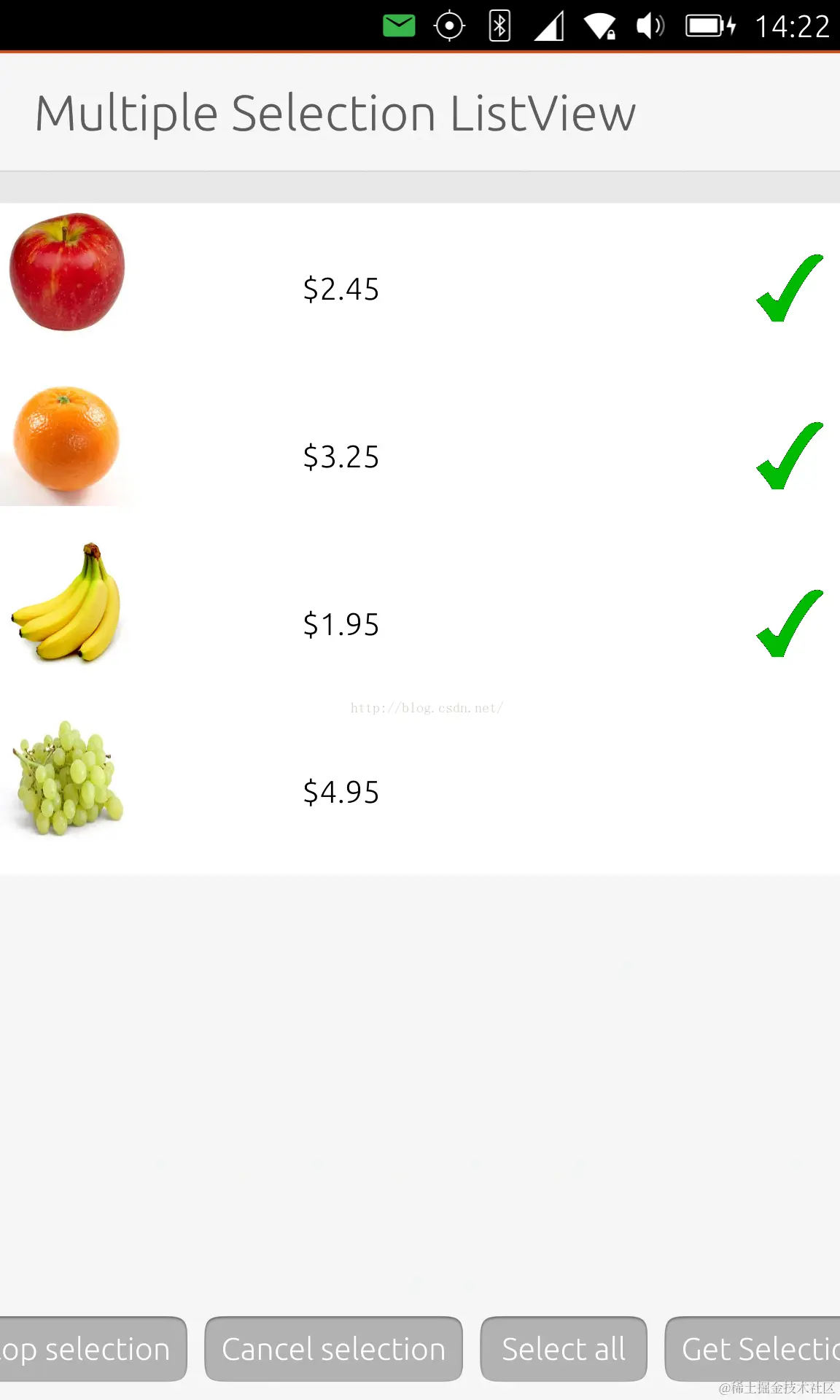 Start the selection mode on the list view.