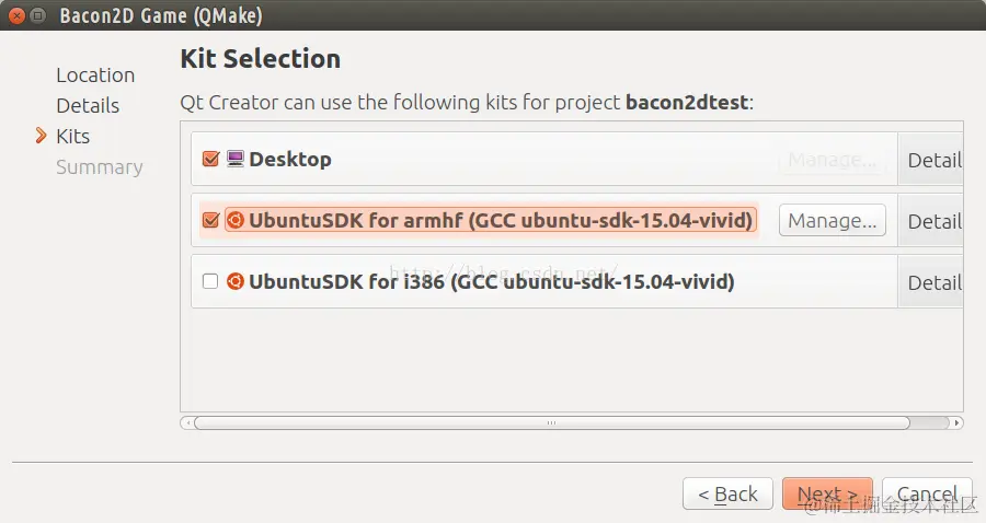 这样我们就可以安装我我们想要的Bacon2D的模块到armhf的chroot里去了.这样你的Kit就可以编译Bacon2D的游戏了.