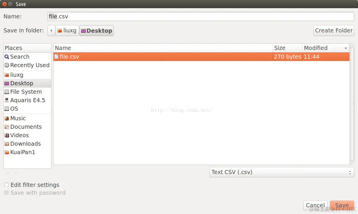 我们可以通过 “Save as”菜单把我们的表格存为一个CSV的文件格式: