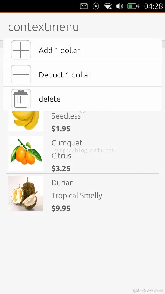 我们在很多的系统中看见可以在屏幕的一个地方长按,然后就可以根据当前显示的上下文弹出一个菜单。菜单中可以有一些选项,比如删除,修改该项。这种一般在ListView或GridView中常见。今天,我们就在这个例程中详细介绍如何实现这个功能。