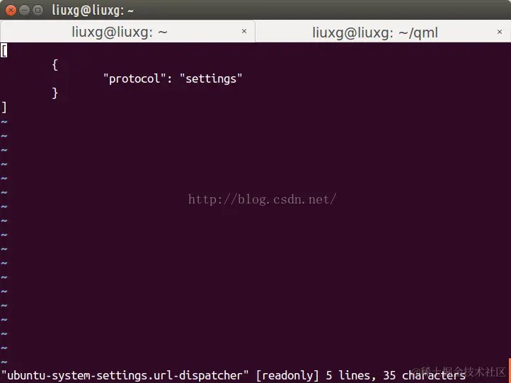 上面列举了我们手机系统中已经有的URL dispatcher。比如我们可以查看system-settings的url dispatcher的protocol: