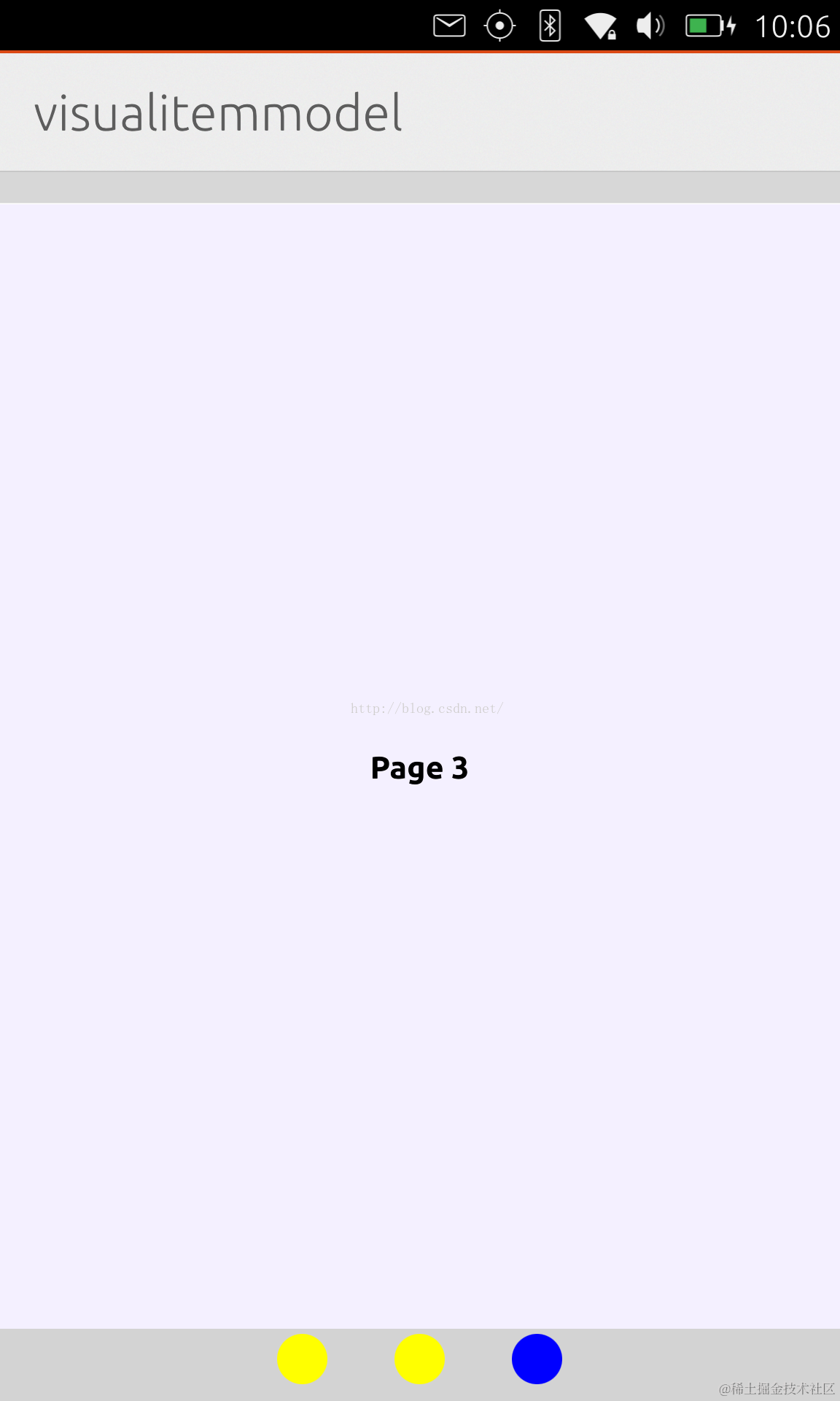 在上面的例程中,我们可以点击下面的圆点来切换我们的page。我们也可以利用ListView的特性来左右swipe我们的画面来改变当前的Page号码。这种情况适合于展示不同页面,而且每个页面也不同的情况。