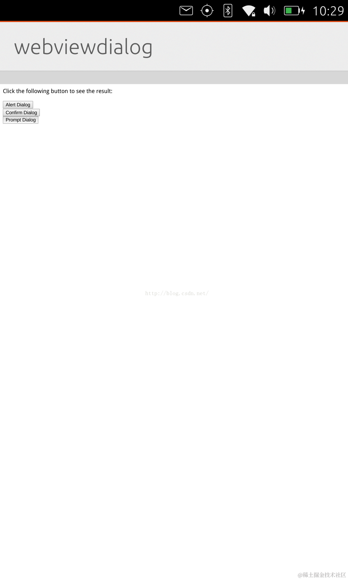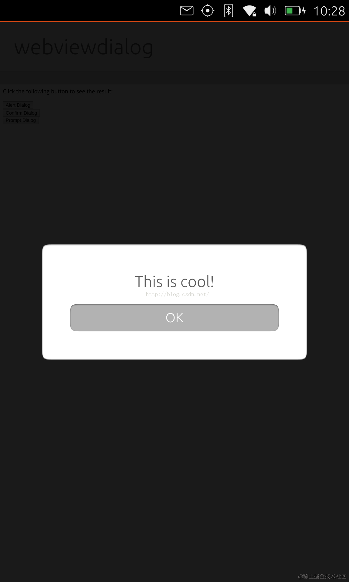 在这里,我们对alertDialog及confirmDialog进行了初始化,这样当我们在index.html中使用alert及confirm时,我们可以得到我们需要的Dialog: