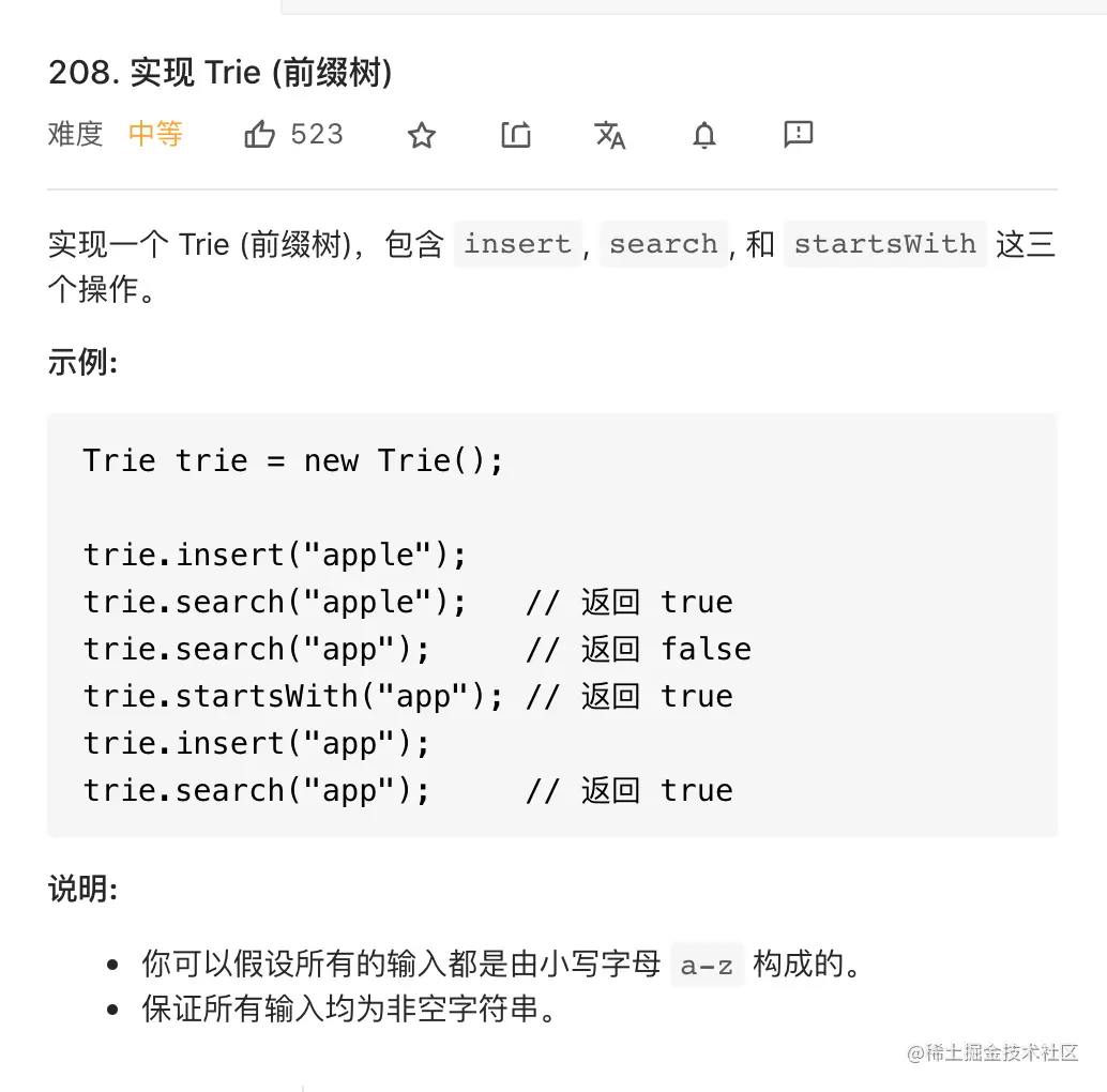 本文将讲两道题,一道是前缀树的实现,另一道题是前缀树的应用。 题目链接: leetcode-cn.com/problems/im…