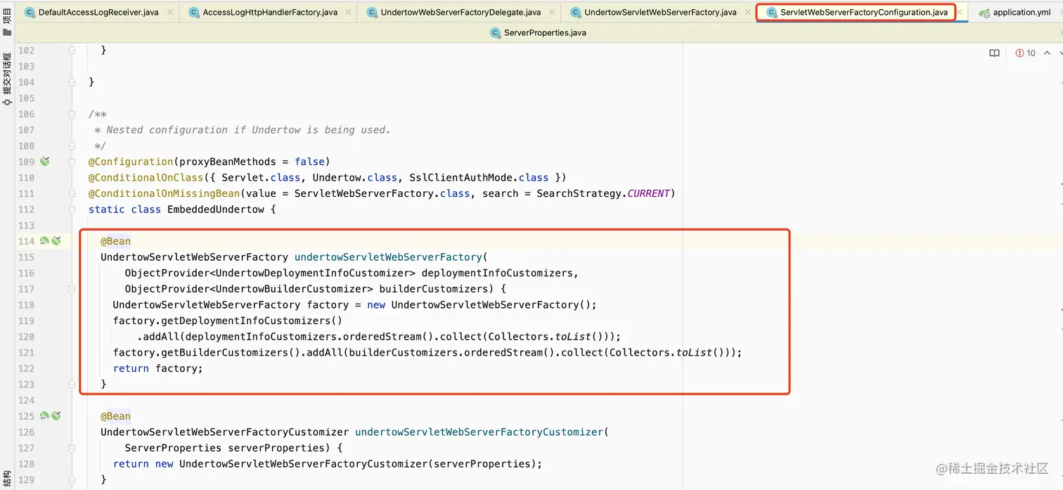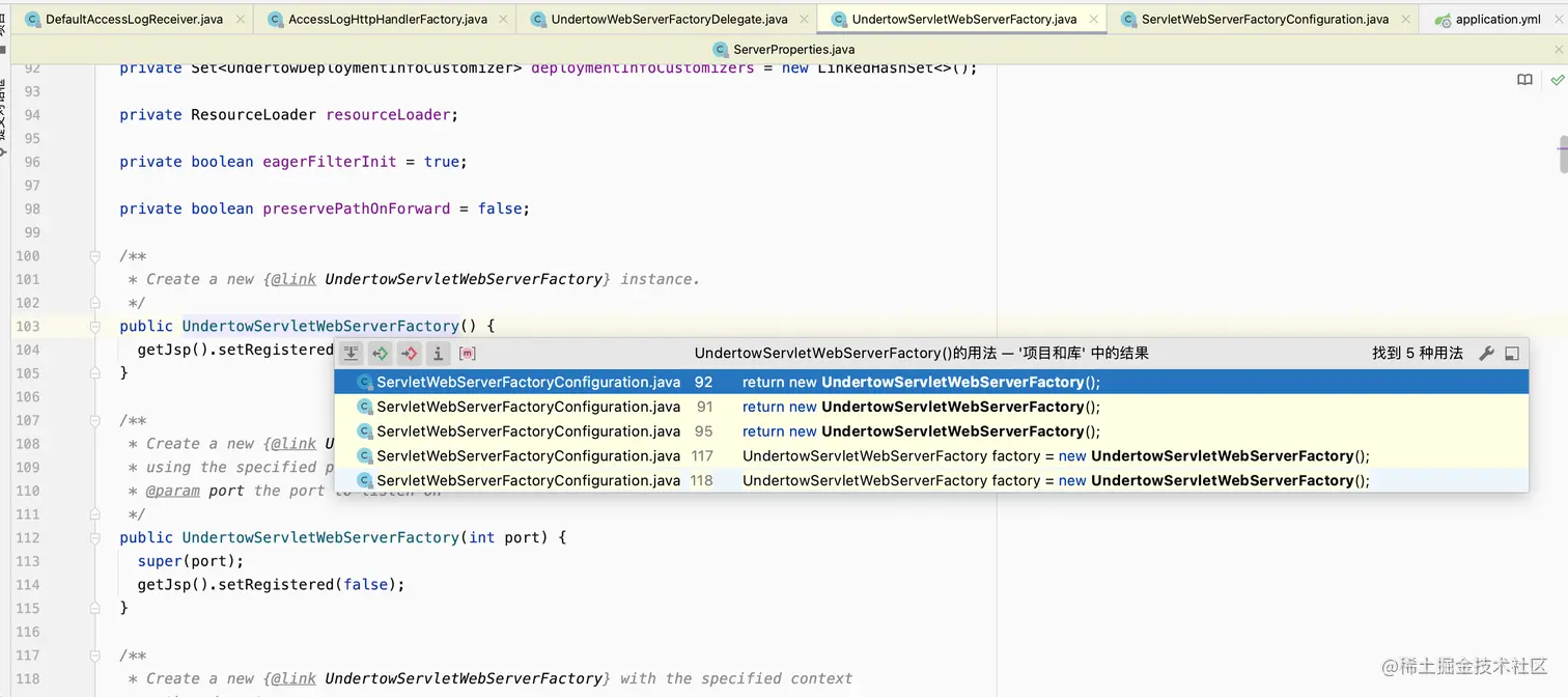最后定位到UndertowServletWebServerFactory这个工厂类,竟然还是直接new的,并且还是私有的(人类是有极限了,我不做人了,JOJO!!!)