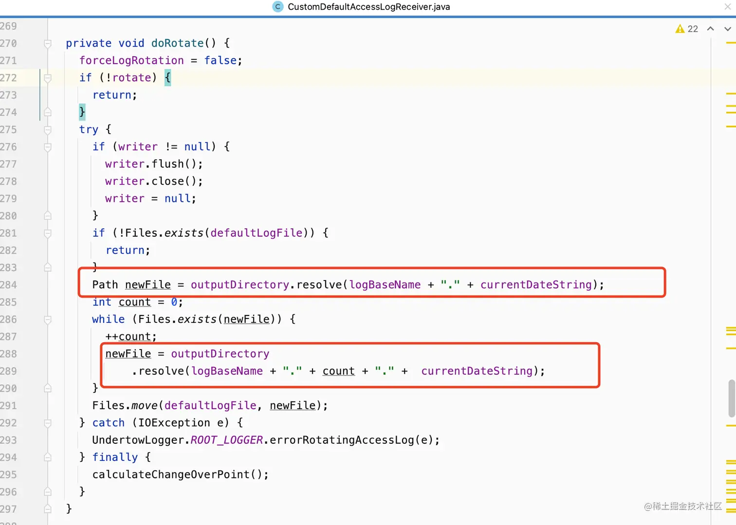 这个方法调用了doRotate();进行日志的切割,我们接着看doRotate()方法