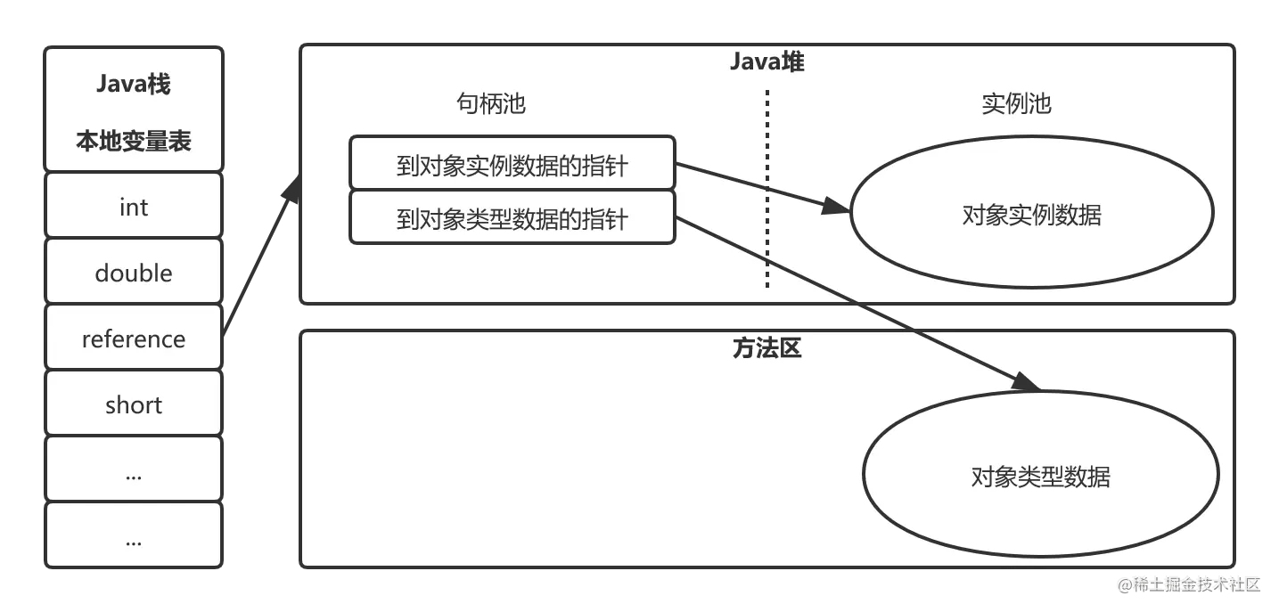 最大的优势是reference中存储的是稳定的句柄地址,在对象被移动(垃圾收集时已从对象是非常普遍的行为)时只会改变句柄中的实例数据指针,而reference不需要修改