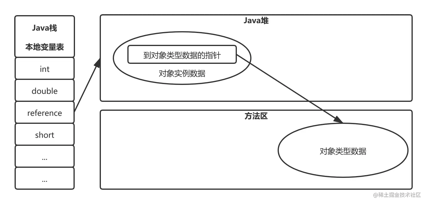 对象头:一部分用于存储对象自身的运行时数据,如哈希码、GC分代年龄,另一部分是类型指针,虚拟机通过这个指针来确定对象是哪个类的实例;