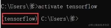 输入y,等待加载完成后激活环境:activate tensorflow(出现圈出来的就代表成功了)