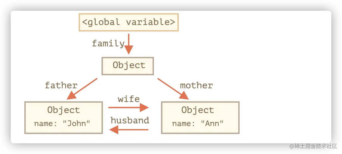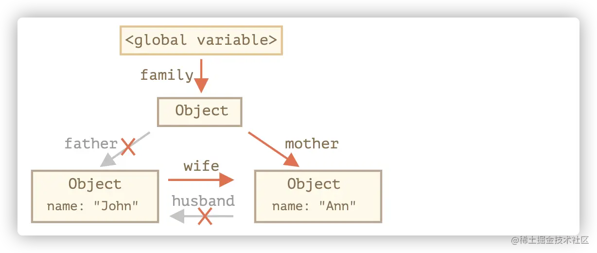 此时{name:John}依然可以通过变量admin访问,它就不能被回收。