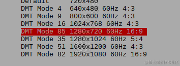 4.更多分辨率选择如下,修改hdmi_mde=?即可。