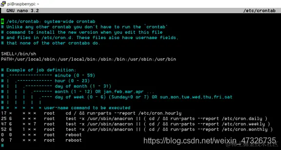 sudo nano /etc/crontab