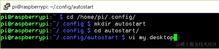 cd /home/pi/.config # 进入.config隐藏文件