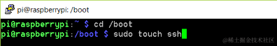 树莓派官方镜像设置远程SSH登录 用户1676151250752 2021-02-19 113 阅读1分钟 1. 依次键入如下指令: cd /boot sudo touch ssh 如下图: 2. 完成以上步骤后,重启树莓派,即可用putty等工具,通过树莓派的IP地址,远程登录树莓派