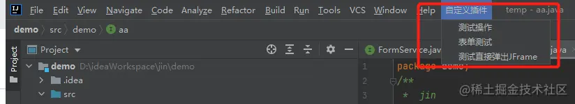 <action id="hello-pan.DemoAction" class="jin.panpan.action.DemoAction" text="测试操作" description="这是一个操作的示例代码" />