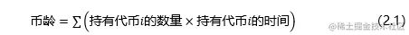 随着参与比特币挖矿的人越来越多,PoW的许多问题逐渐显现,例如随着算力竞争迅速加剧,获取代币需要消耗的能源大量增加,记账权也逐渐向聚集了大量算力的“矿池”集中[6-9]。为此,研究者尝试采用新的机制取代工作量证明。PoS的概念在最早的比特币项目中曾被提及,但由于稳健性等原因没被使用。PoS最早的应用是点点币(PPCoin),PoS提出了币龄的概念,币龄是持有的代币与持有时间乘积的累加,计算如公式(1.4)所示。利用币龄竞争取代算力竞争,使区块链的证明不再仅仅依靠工作量,有效地解决了PoW的资源浪费问题。