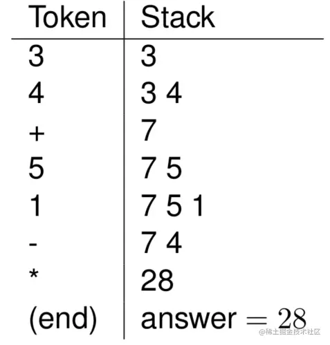 - 如果是一个操作符, 将栈中的两个元素弹出, 计算后压入栈中;