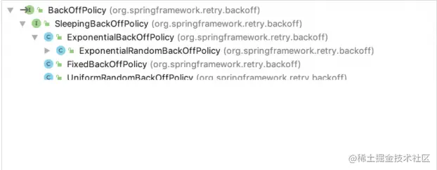 看一下退避策略,退避是指怎么去做下一次的重试,在这里其实就是等待多长时间。(下文原理部分会深入分析实现)