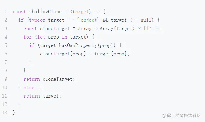 大致的思路分为两点: 对基础类型做一个最基本的一个拷贝; 对引用类型开辟一个新的存储,并且拷贝一层对象属性。