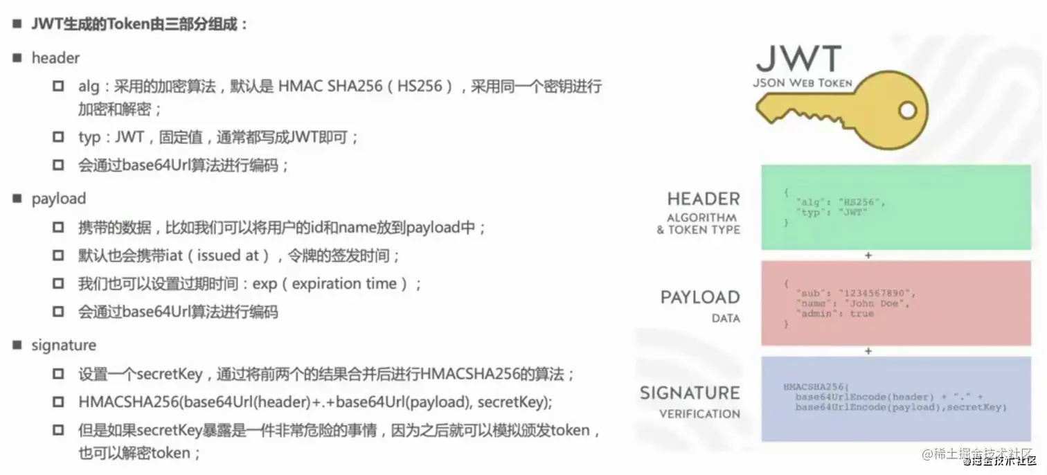 所以在项目中一般我们常使用非对称加密,利用公钥和私钥的方式,利用私钥颁发token,利用公钥解密token,这样只需要保护好私钥就好,例如登录模块利用私钥颁发token,其他详情模块只有公钥解析,并不能生成,大大提高了安全性