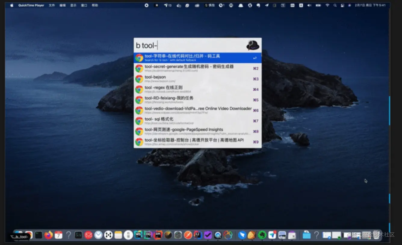 配置alfred chrome 书签工作流,需要整理书签,加上前缀 这个时候就可以把相关的书签展示出来,选择打开哪一个