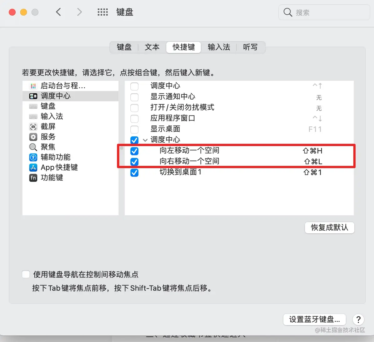 这个地方需要修改系统配置,键盘快捷键