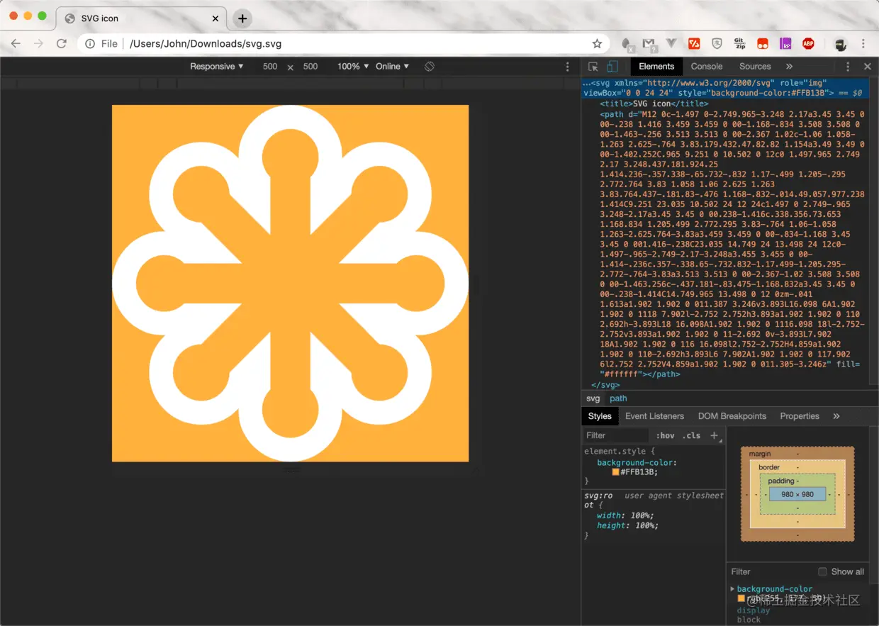 直接把 SVG 图标拖动到 Chrome 页面,打开: