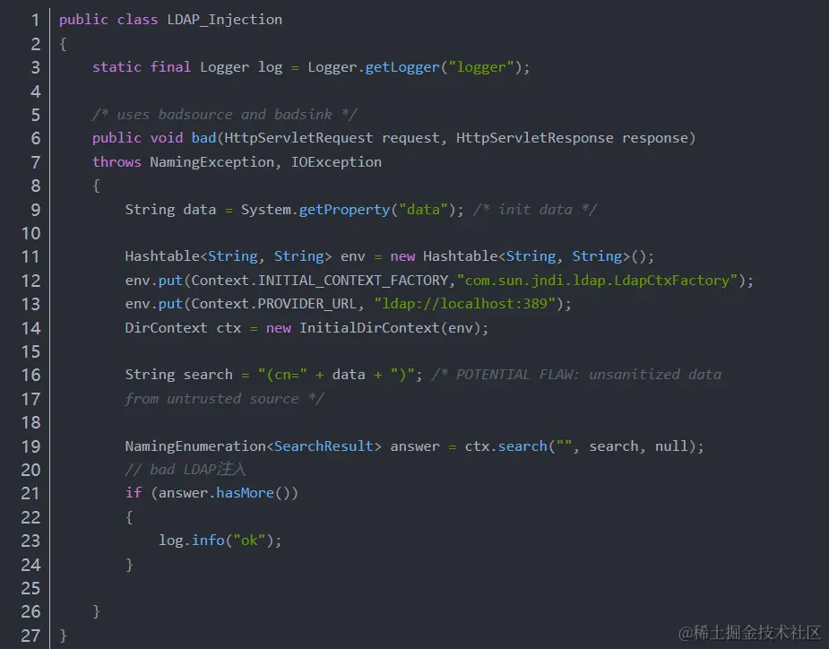 满足以下条件,就构成了一个LDAP注入的安全漏洞: