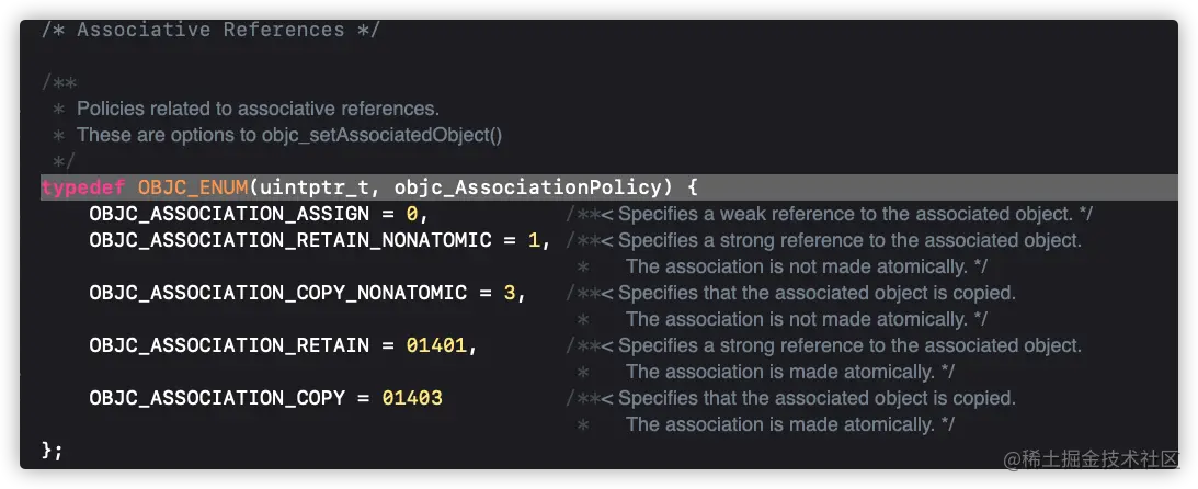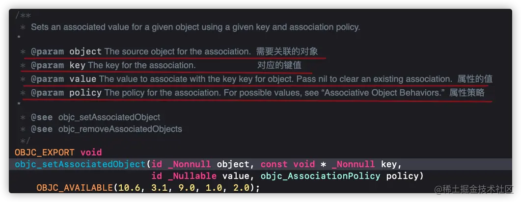 objc_setAssociatedObject- 搜索源码查看入参含义