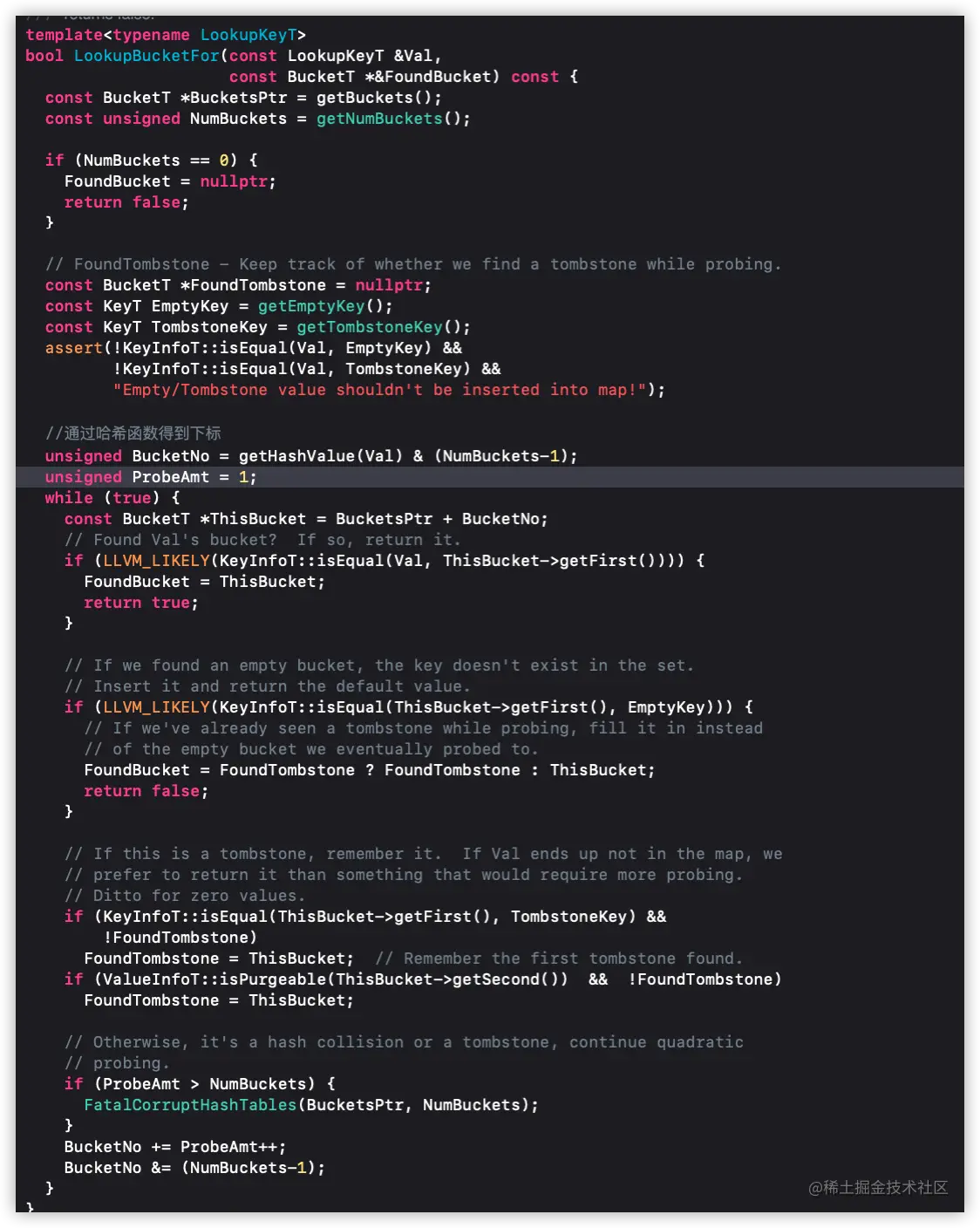 try_emplace方法中实现LookupBucketFor源码实现如何辨别