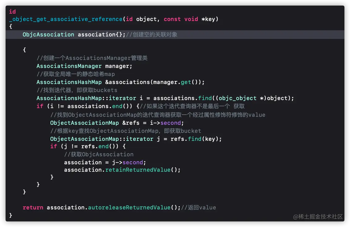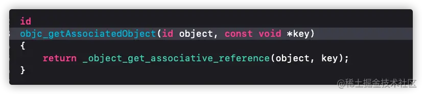 通过源码发现底层调用的是_object_get_associative_reference方法来实现功能再看