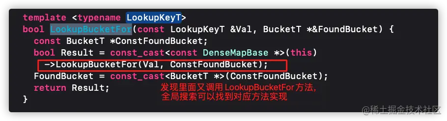 try_emplace方法中调用的是哪个方法,通过入参属性修饰符来判断 内部调用的LookupBucketFor方法源码实现 - 通过