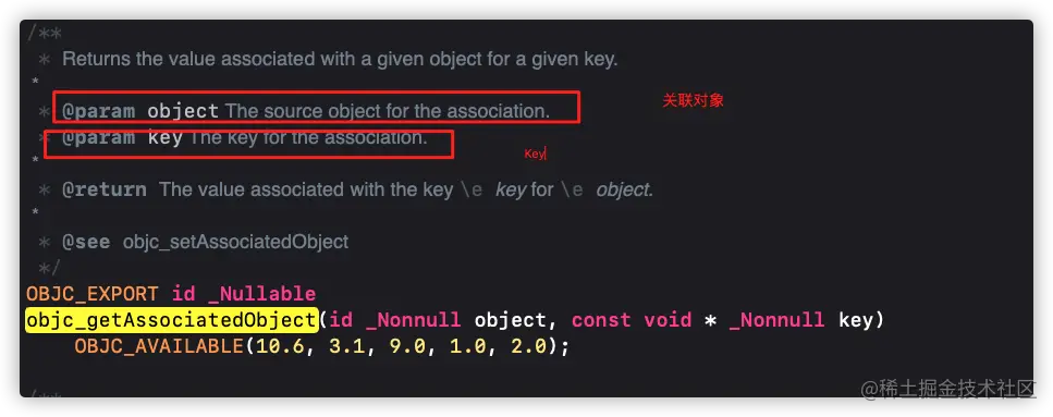 objc_getAssociatedObject- 搜索源码查看入参含义