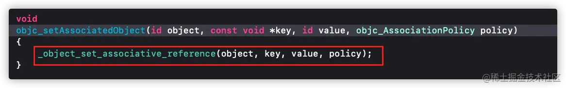 通过源码发现objc_setAssociatedObject底层调用的是_object_set_associative_reference方法实现功能再看