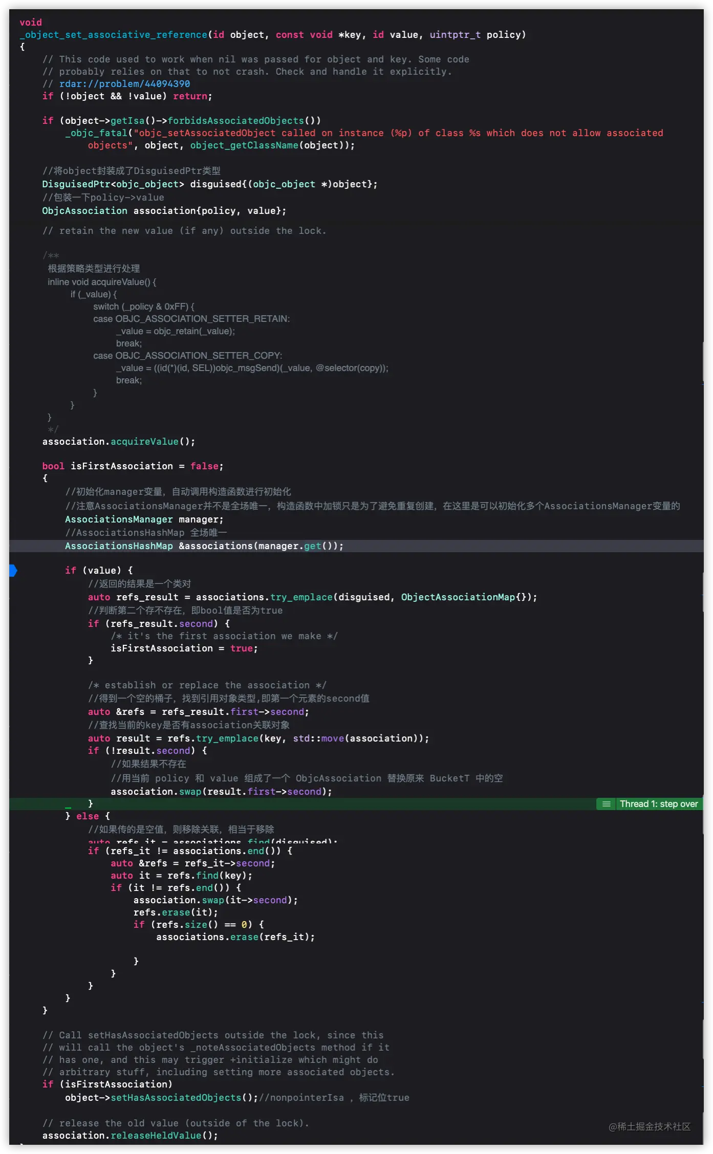 setHasAssociatedObjects方法标记对象存在关联对象即置isa指针的has_assoc属性为true - 用当前policy和value组成了一个