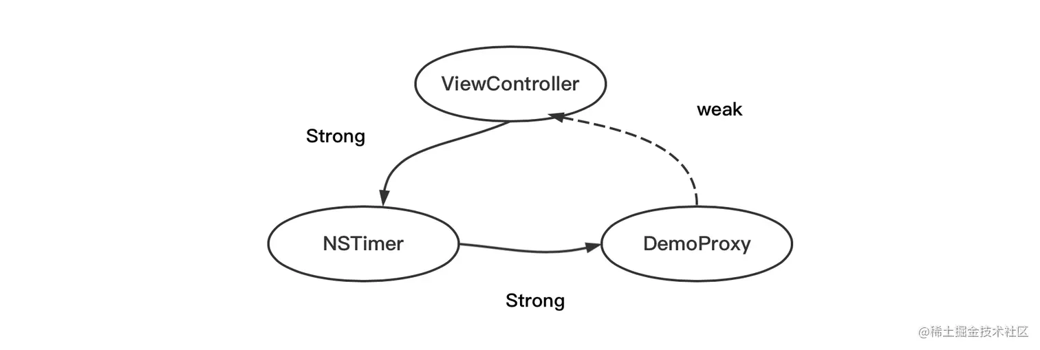 // 使用 DemoProxy 作为中间的弱引用媒介对象