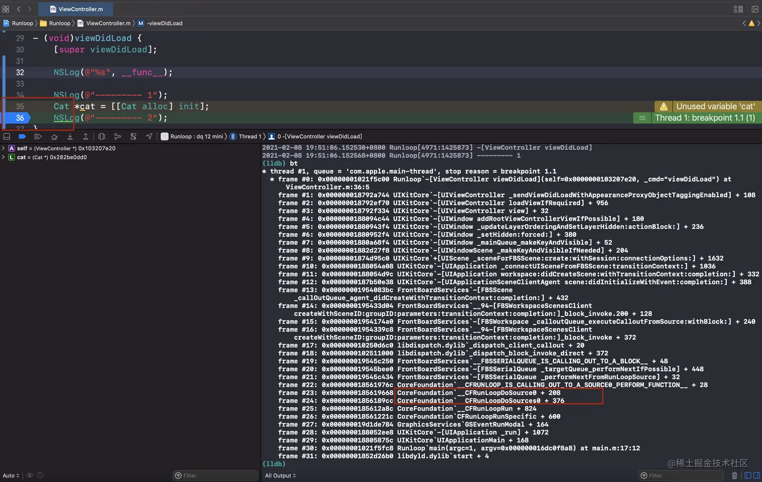 2021-02-08 19:50:00.721015+0800 Runloop[4968:1425283] -[ViewController viewDidLoad]