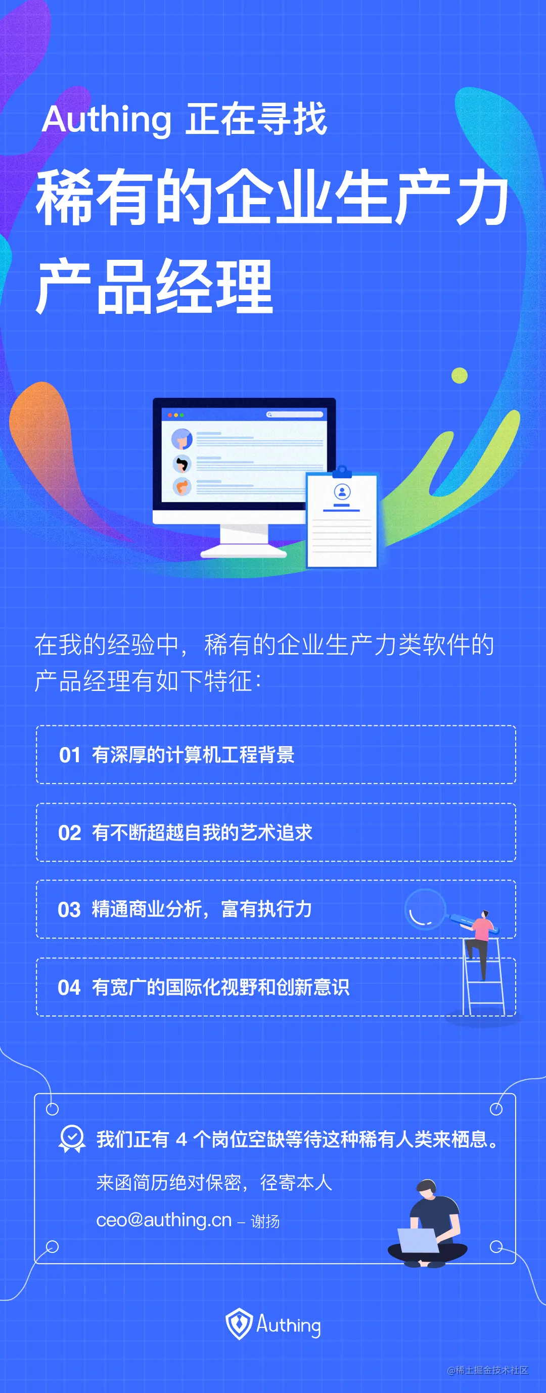 来函简历绝对保密,径寄本人 —— ceo@authing.cn 谢扬