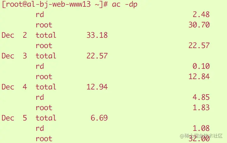 6.查看机器所有用户的连接时间(小时),对应日志文件“/var/log/wtmp”
