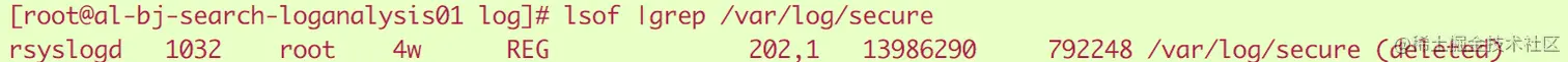 b.使用lsof命令查看当前是否有进程打开/var/log/secure