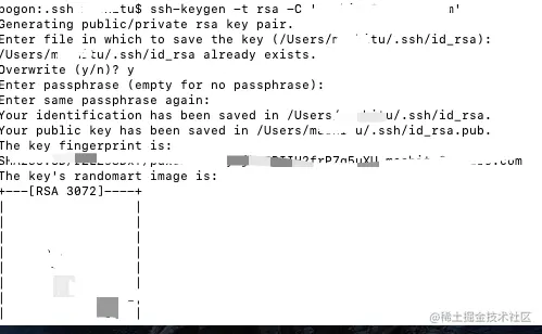 然后一直回车就行,如上图,然后用 cat id_rsa.pub 获取到本地生成的 ssh_key