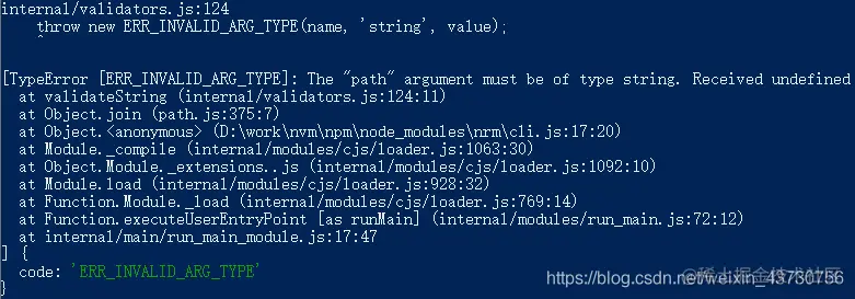 总结: 从我这里看, 应该是nrm在设置运行路径, 更改系统环境变量时取系统变量process.env.HOME 的方式在我的电脑上不适用, 所以造成了报错